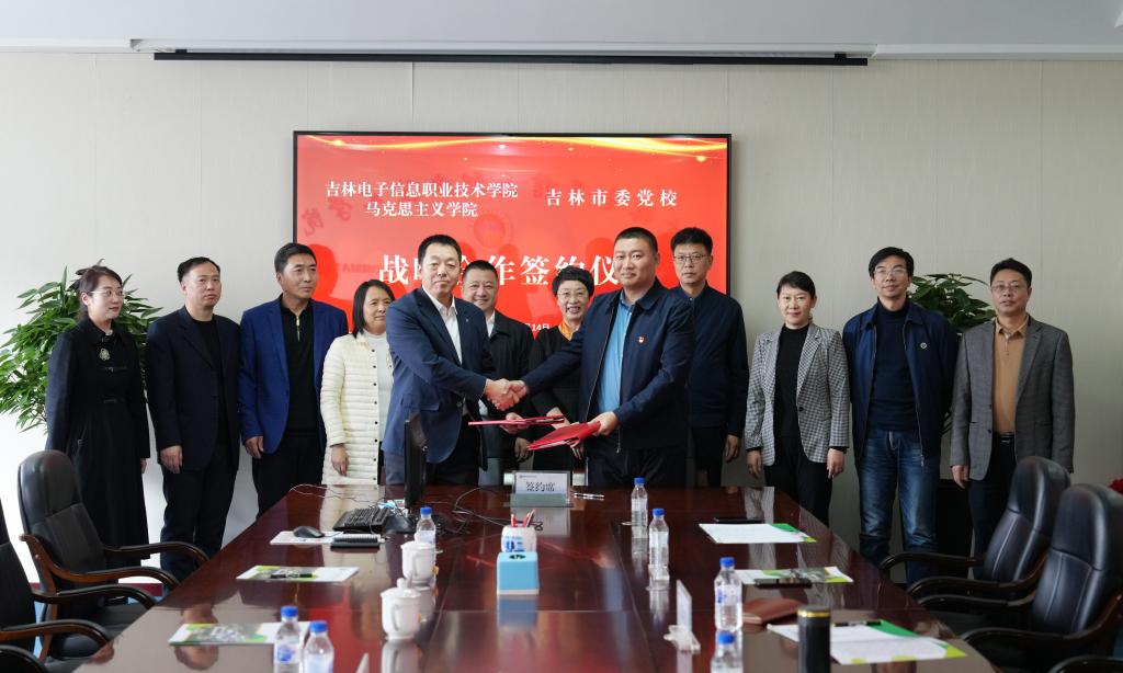 为深入学习贯彻习近平新时代中国特色社会主义思想,加强思政课建设,打造新时代“党校+高校”育人新模式。3月14日,我校马克思主义学院与吉林市委党校在主校区办公楼三号会议室举行战略合作协议签约仪式。学校党委书记何晓杰、校长杨勇、党委副书记石洪发、纪委书记高楠、副校长于钧、副校长刘占文,吉林市委党校常务副校长王识开、副校长谢忠宝、副校长银燕、教育长宫晓明、副校长单已新出席签约仪式。