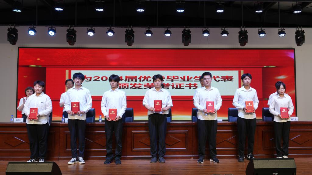 典礼上,副校长张晓娟宣读了关于准予2024届学生毕业的决定;党委副书记石洪发宣读了学校关于表彰2024届优秀毕业生的决定;学校领导为毕业生代表和优秀毕业生代表颁发荣誉证书。