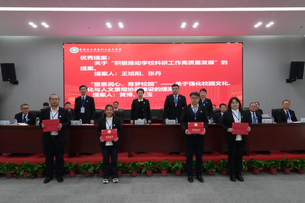 大会表彰了八届三次教代会优秀提案,校领导为优秀提案获得者颁奖。优秀提案的提案人代表王旭阳、黄博作了分享发言。