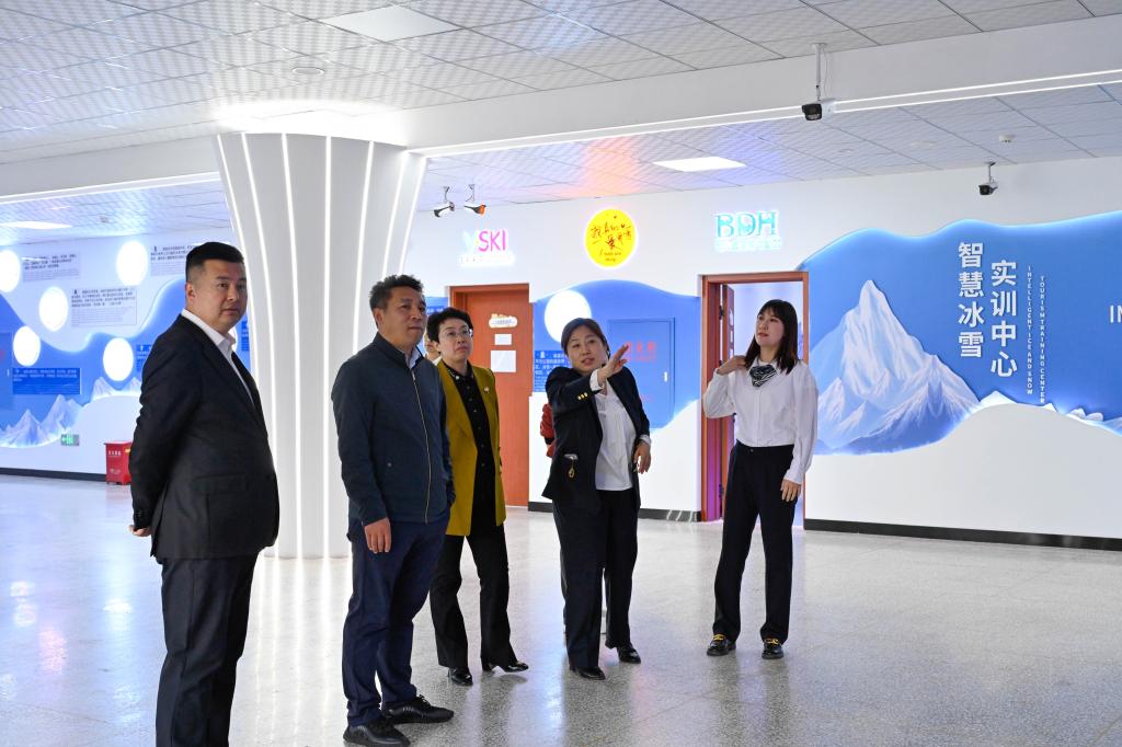 调研组实地走访学校智慧工业网络技术实训基地、校史馆、铸牢馆、智能制造技术实训基地及智慧冰雪实训中心,深入考察学校在电子信息、智能制造、冰雪文旅、人工智能等领域的教学实践与技术创新成果。宋国轩对学校紧密对接产业需求、打造特色实训平台的做法表示高度认可,并强调职业教育在服务区域经济发展中的重要作用。