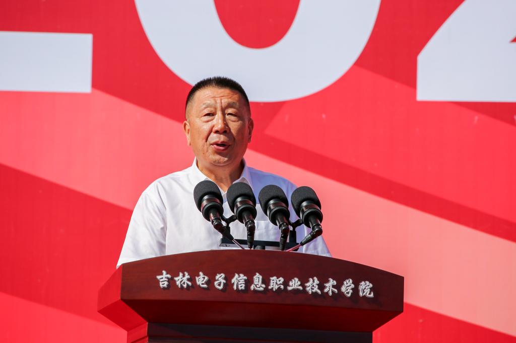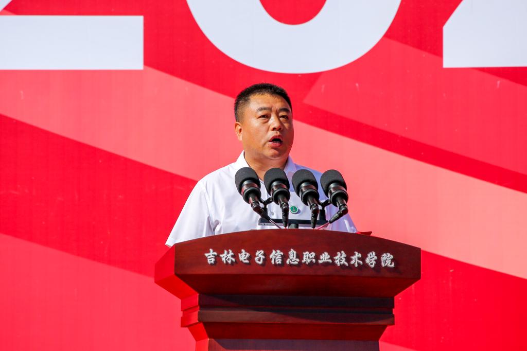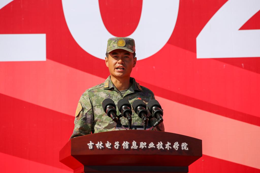石洪发代表学校党委向2025级新生表示欢迎,向承训教官致以敬意,向筹备军训的教职工表示感谢。他指出,今年是中国人民抗日战争暨世界反法西斯战争胜利80周年,军训作为大学首堂“成长必修课”,既是对青春的淬炼、对历史的铭记,更是磨砺意志品质、培育团队精神与家国情怀的重要历程。同时,他对即将投入军训的新生提出四点希望:一是坚定信念,锤炼钢铁意志;二是严明纪律,培养“令行禁止,步调一致”的优良作风;三是以包容心态融入集体,增强团队意识;四是以积极态度学习技能,提升综合素养。同时,他要求教官们科学施训、严慈相济,辅导员们做好保障、贴心服务,共同为军训顺利开展筑牢坚实后盾。